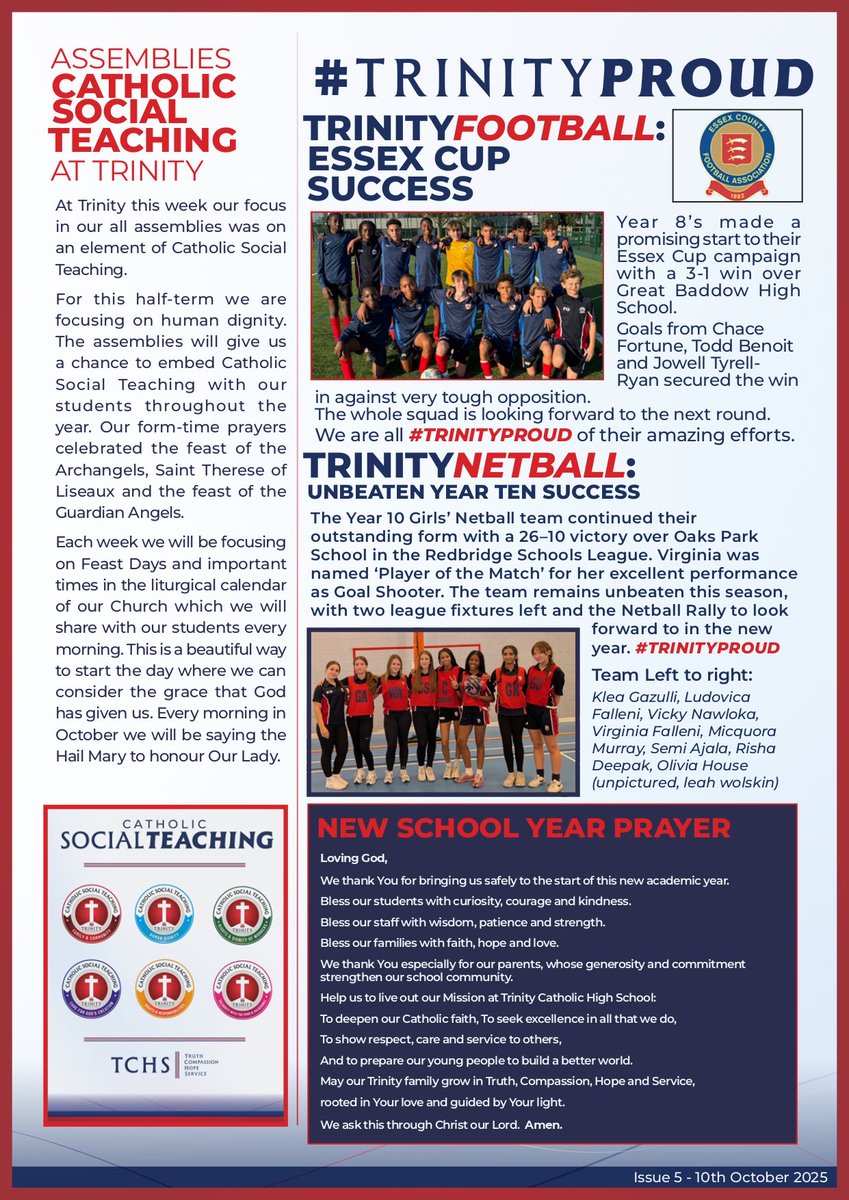 This year marks a remarkable milestone in the history of Trinity Catholic High School as we proudly celebrate 50 years of educating, inspiring, and shaping the lives of young people. Since our doors first opened in 1975, thousands of students have walked our corridors, each leaving their mark on our community while carrying forward the values that lie at the heart of Trinity.