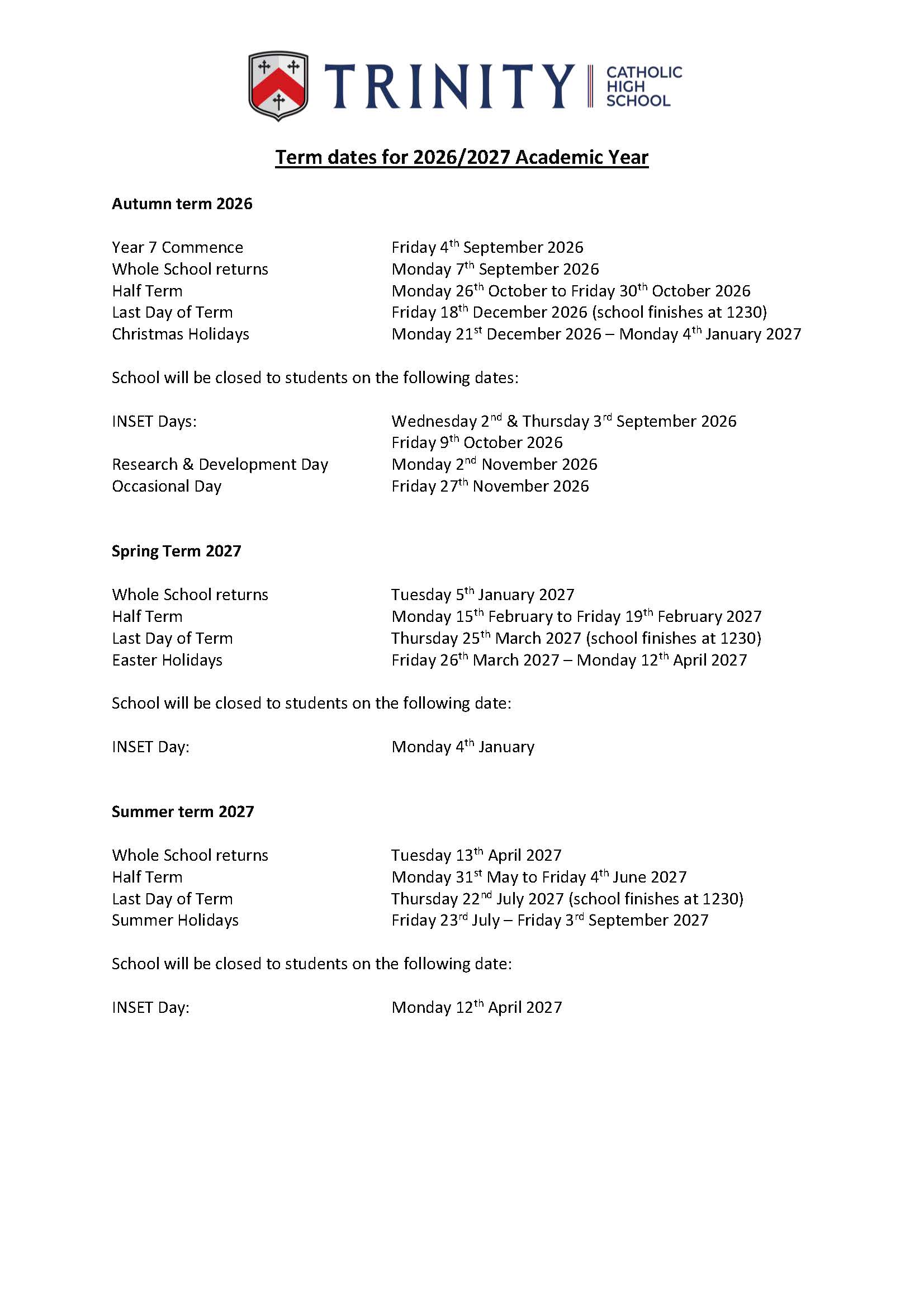 Term Dates / School Hours